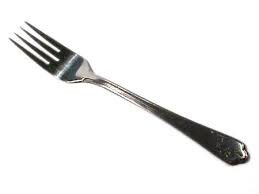 >A FORK. We use this for eating. It .is usually used to lift food to the mouth or to hold food in place while cooking or cutting it. It was probably developed to help us lift food to the mouth and hold the food in place while cutting it or cooking it.
